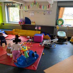 | Aantal groepen | Deze opvang heeft 8 leefgroepen. Er zijn vier leefgroepen met kinderen van 6 weken tot 18 maanden en vier leefgroepen met kinderen van 18 tot 36 maanden. |